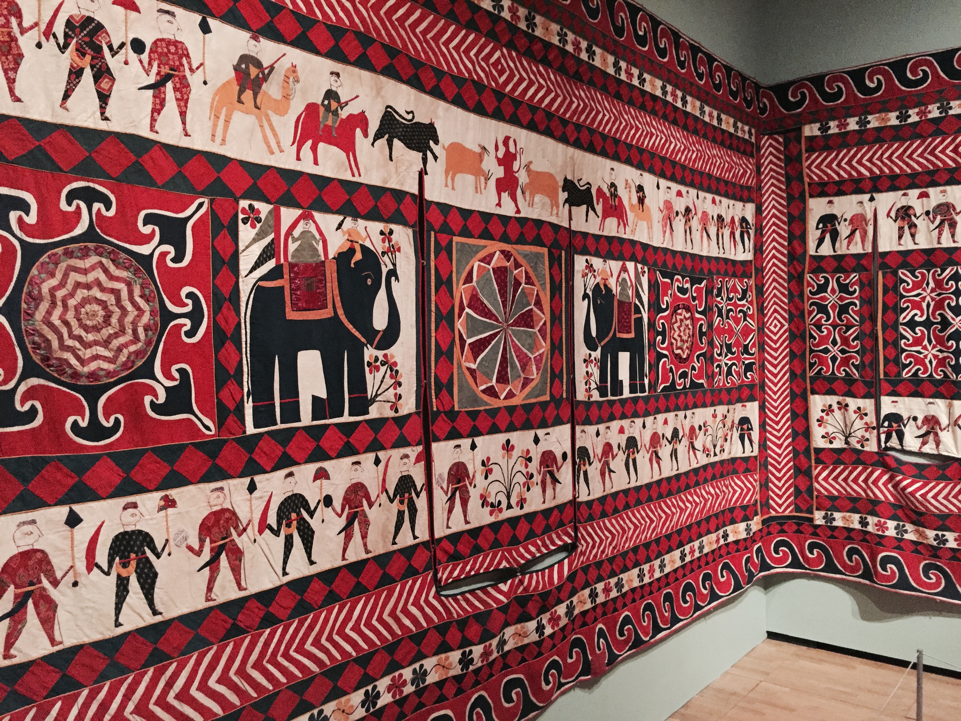 The piece above like Tipu’s tent are hung up and allow viewers to wander inside and get a feel of the opulence and drama of both pieces.